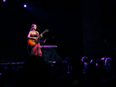 Toward the end of the set, Lou admitted to us that despite her history as a busker, she’d been really nervous to go on this tour, wondering if she’d be enough on her own. Her presence was more than enough for the fans in the audience, though, who seemed nothing short of enchanted by her calm ethereality. She wasn’t so alone anyway between a few reappearances by John Andrews supporting her on guitar and keys throughout the set and a wholesome sing-along of “Harvest Moon” with the thousand beating hearts in her audience. Lou’s final message for the room was a reminder to stay soft, and that “When shit out there is going crazy, we’ve got each other.”